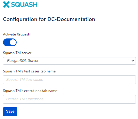 To configure Xsquash for a project, go to [Project parameters], search for "Xsquash" in the vertical menu, then click on [Configure]. Activate Xsquash via the radio button, then select the server you want in the list.