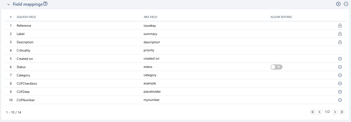 - The Field mappings block enables you to configure the mapping between Jira and Squash fields;