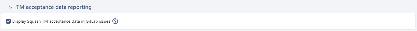 - The TM acceptance data reporting block allows you to enable or disable the reporting to see the course of acceptance testing with GitLab issues;