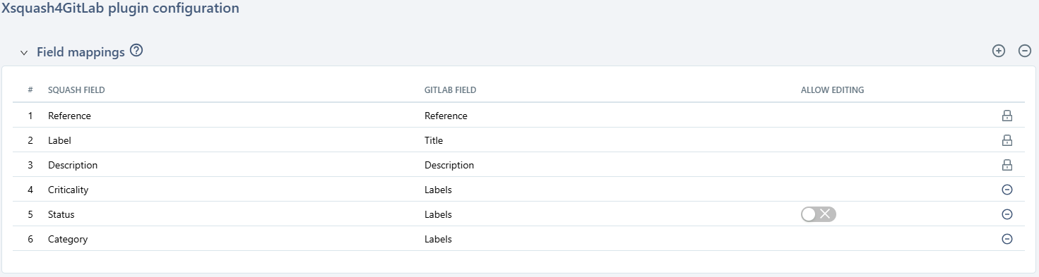 For Squash to display the information contained in the fields of GitLab issues, you must configure the field mappings. For this, go to the 2nd block on the Xsquash4GitLab configuration page.