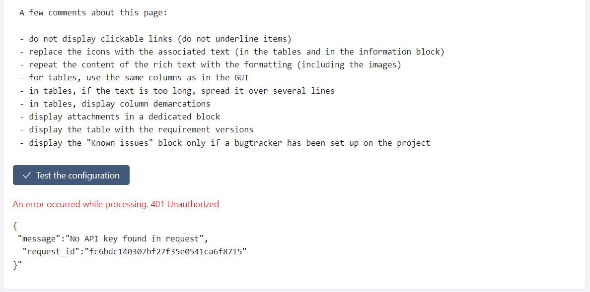 To test that the configuration is working correctly, you need to provide an example of requirement.