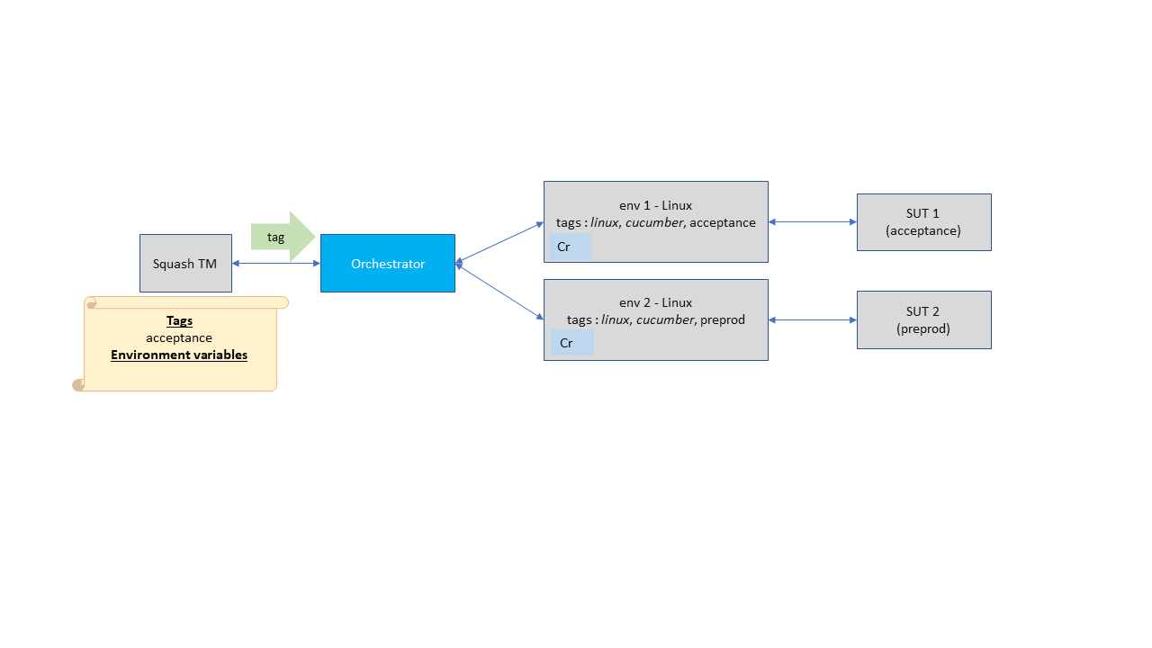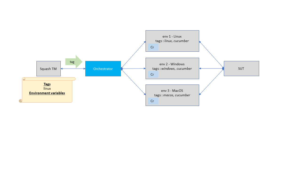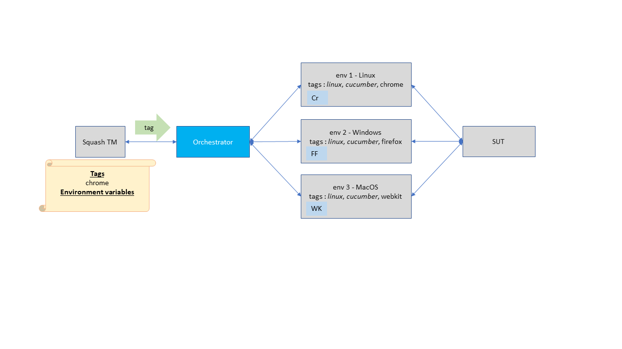 Use the tags to choose the OS when launching the tests in Squash TM. But do not use the test technology tags (cucumber, robotframework, etc.) to select an environment, they are only used by the orchestrator to launch a test on an environment with its technology.