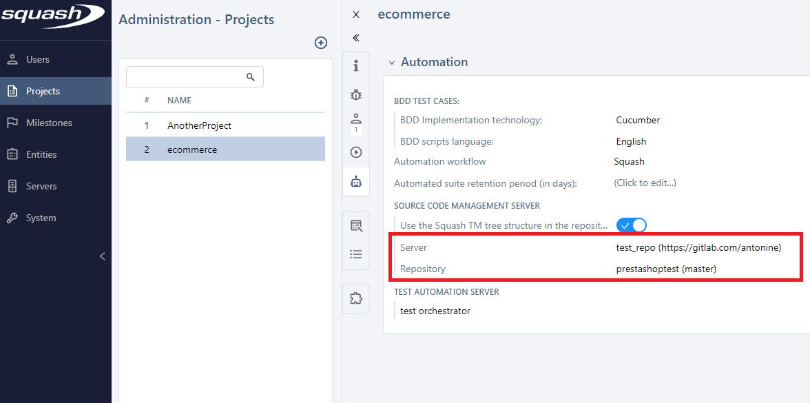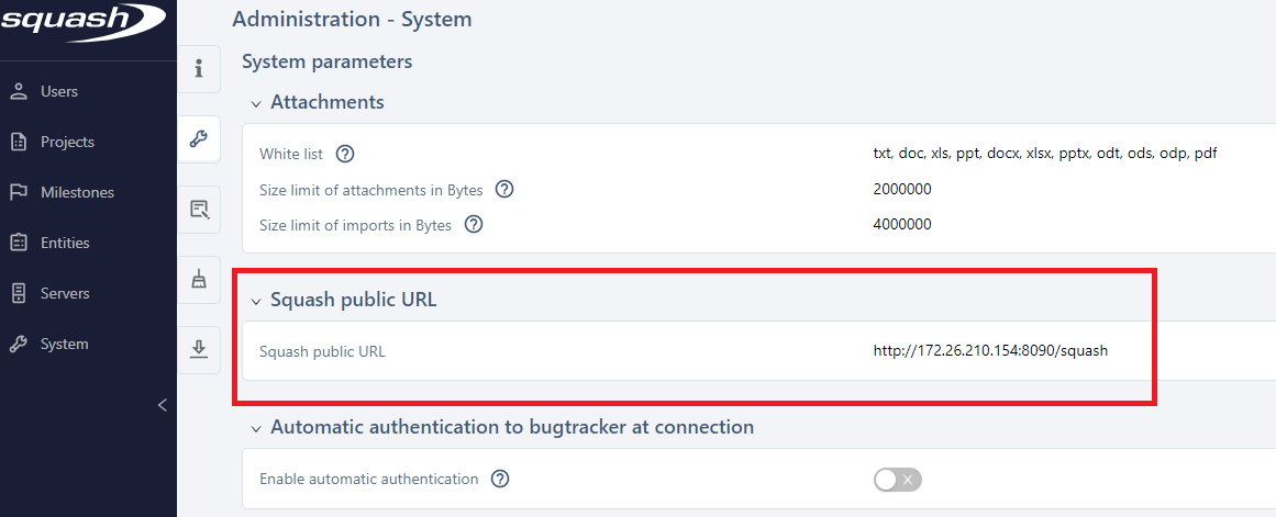 In order to enable the communication between Squash TM and Squash Orchestrator, the public URL of the Squash TM instance must be declared.