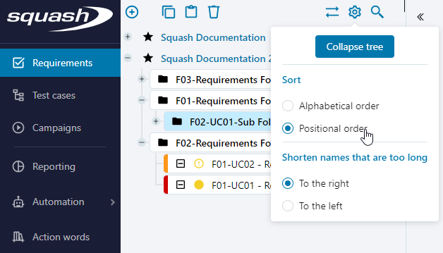 allows you to choose the objects' display order in the Requirement, Test Case and Execution workspaces' libraries.