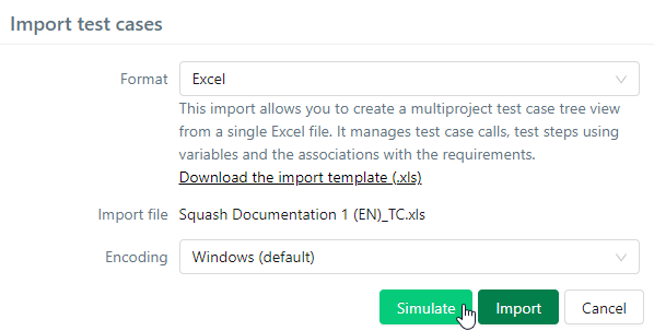 - Simulate the import. This step allows you to verify that the import file is fitting;