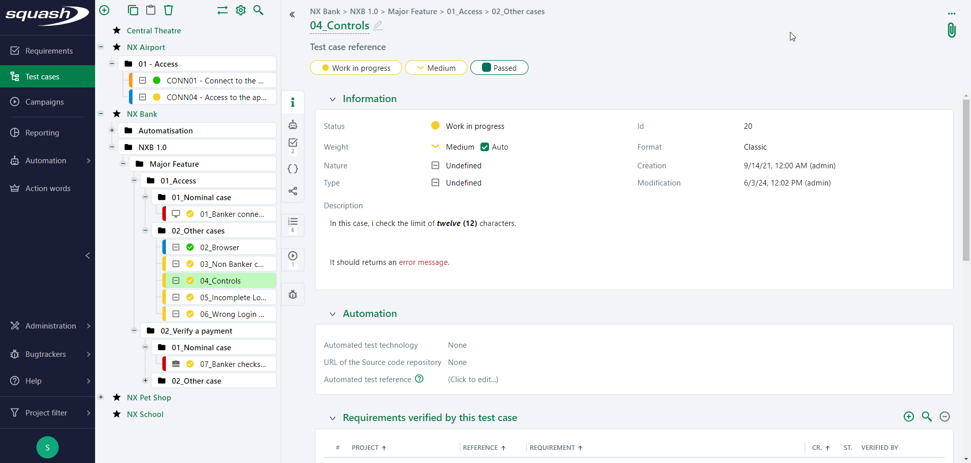 The Automated test writer profile does not have access to all Squash workspaces, only the Automation workspace.
