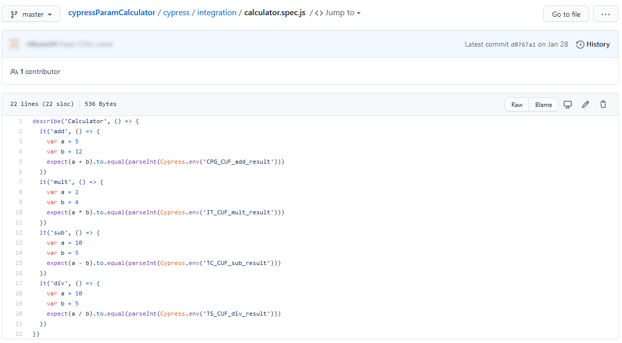 Example 2: my_repo#cypress/integration/actions.spec.js (the Cypress project is at the root of the repository)