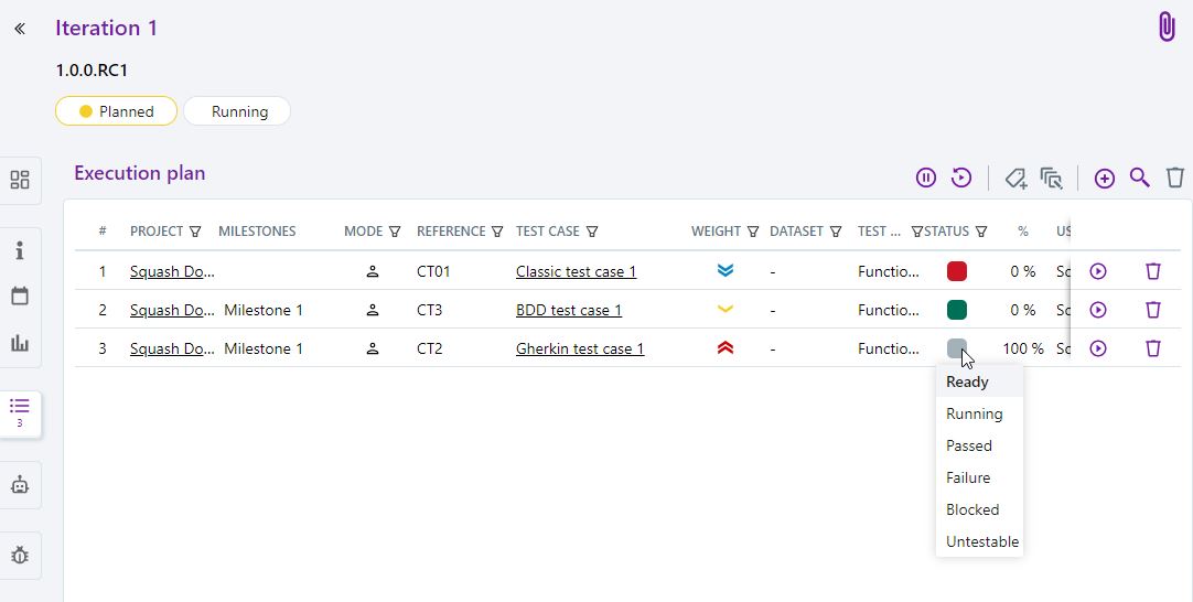 This page concerns test cases in Classic, BDD, and Gherkin formats. To execute exploratory test cases, please refer to the Manage Exploratory Testing page.
