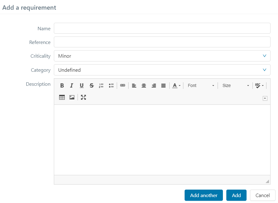 We recommend that you still enter a reference and description for your requirement, even if these fields are optional.