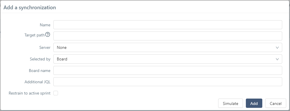 | Filter name | Yes | Yes | Name of the filter to synchronize, as it appears in Jira. Case-sensitive. |