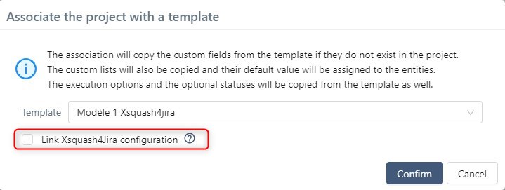 You can also link Xsquash4Jira's configuration when associating an existing project to a template.