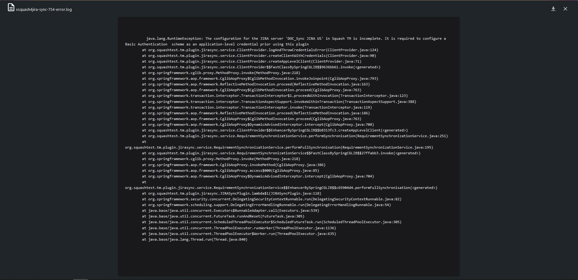 For each 'Failed' synchronization, a log file is available for preview and download. It contains the error specific to the synchronization in order to facilitate resolution.