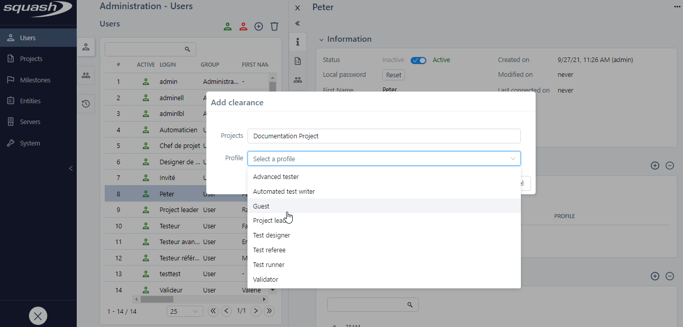 User Profiles in Squash TM