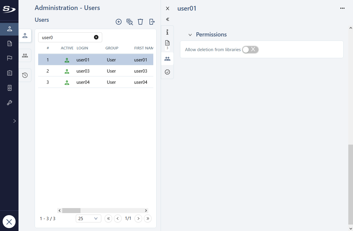 In order to avoid accidental deletions, deletion can be forbidden for each user.