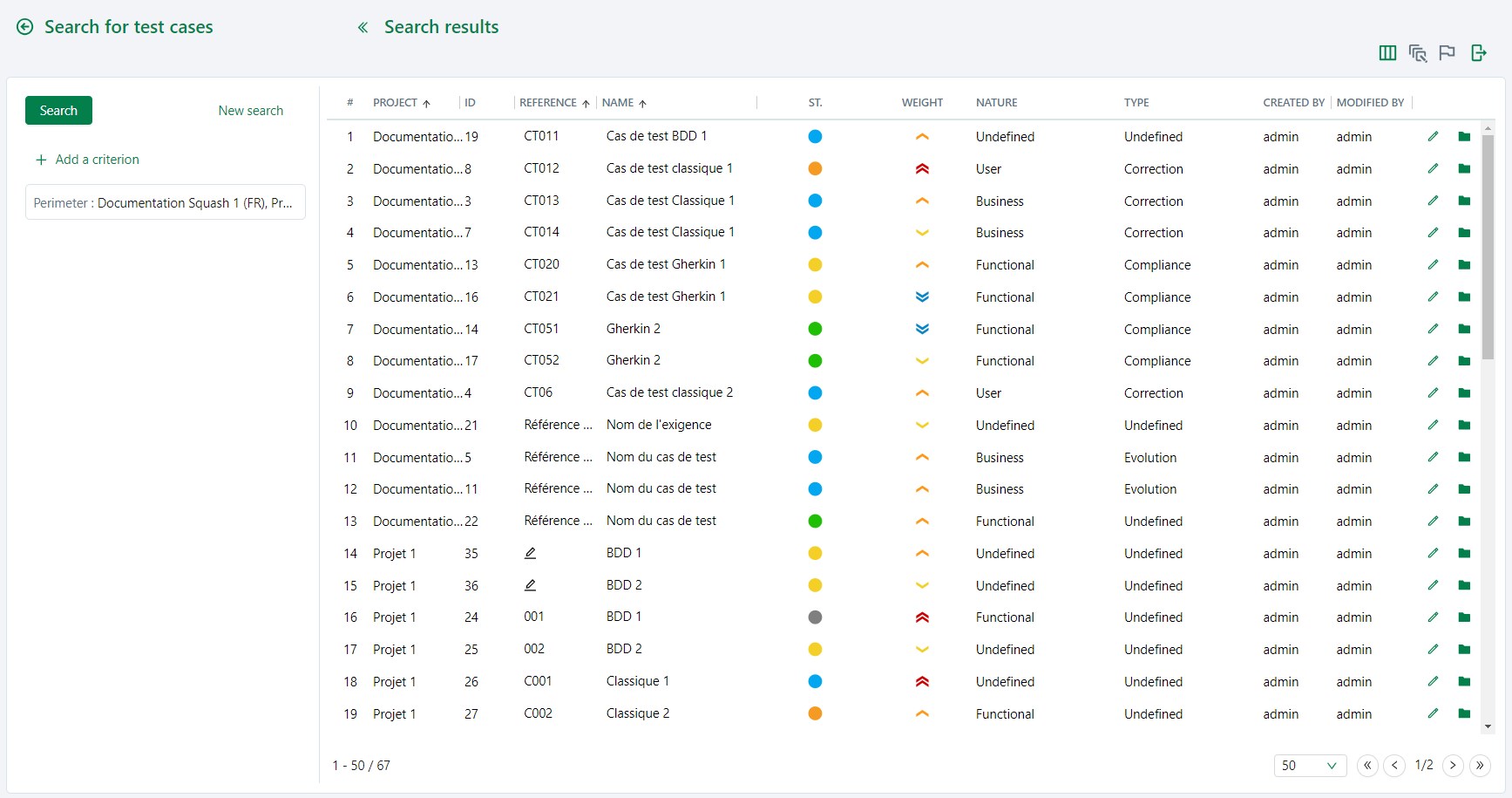 Once linked to the requirement, the test case and its attributes appear in the table. You can click on the test case's name to access its consultation page.