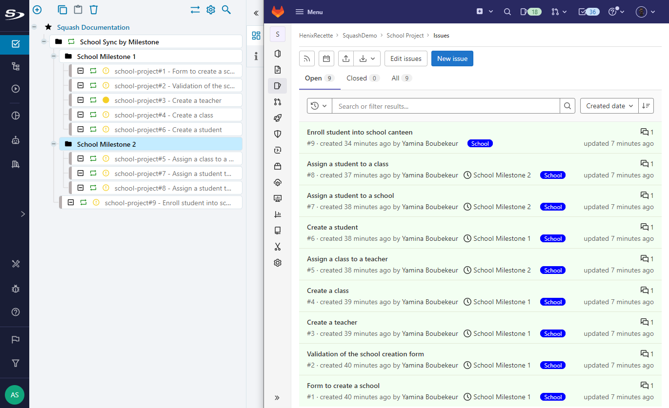 If an issue is linked to another iteration or milestone in GitLab or is not linked to an iteration or milestone anymore, it is automatically moved in the matching folder in Squash TM.