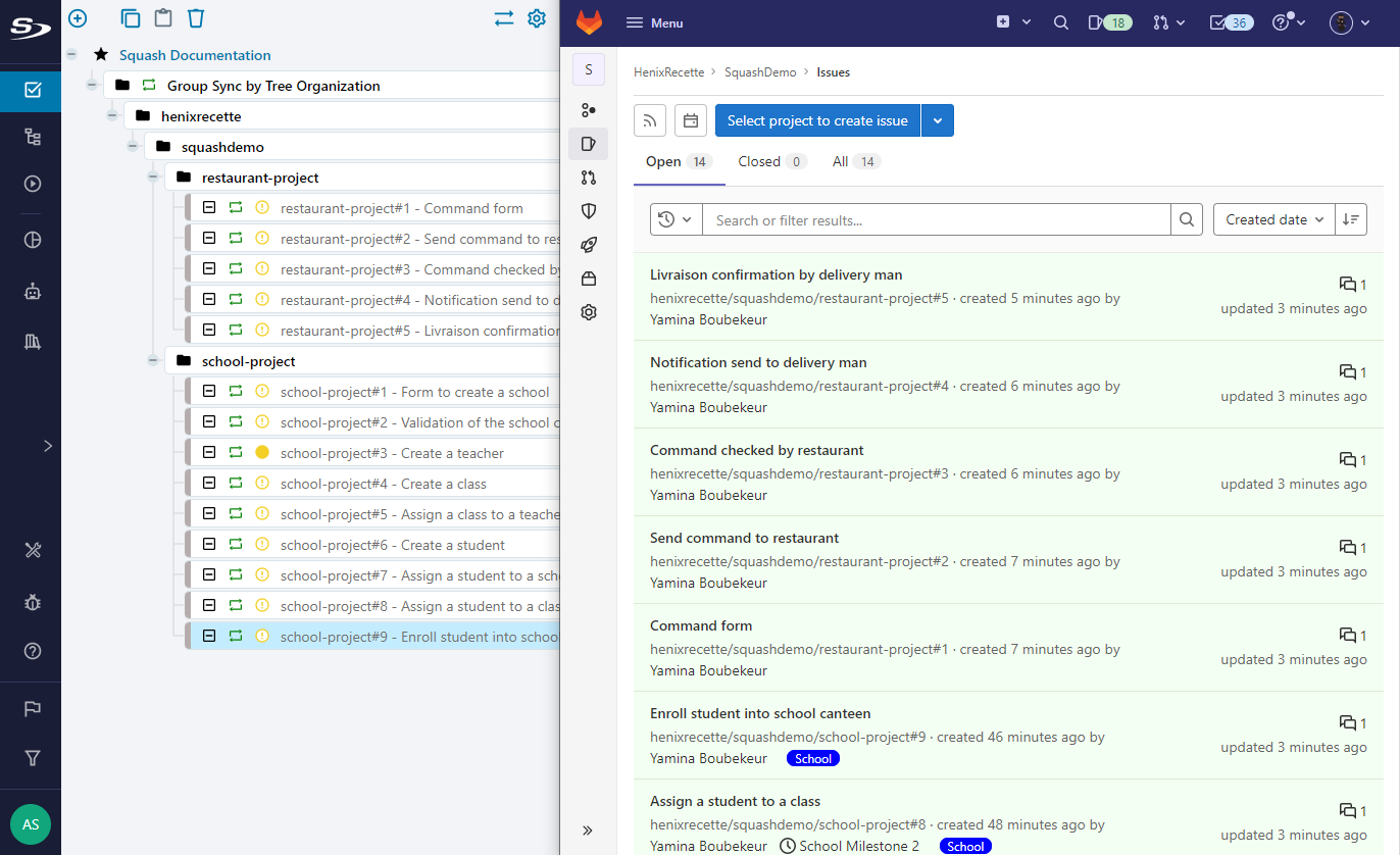 Once the Xsquash4GitLab plugin is correctly set up, GitLab issues are automatically synced as requirements in Squash TM and updated on a regular basis. The synchronization repository as well as all the requirements it contains are created during the first update.